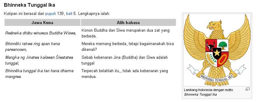 Kalimat ini merupakan kutipan dari sebuah kakawin Jawa Kuno yaitu kakawin Sutasoma, karangan Mpu Tantular semasa kerajaan Majapahit sekitar abad ke-14.